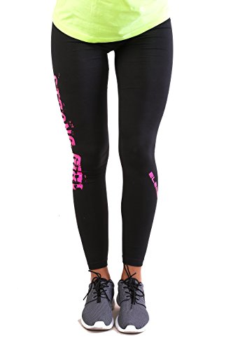 'Leggings neri con logo Elemental Force "" "Strong Girl in rosa fluo