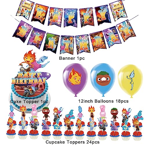 Elemental Pallone Decorazione Party Set 44pcs Festa Palloncini Di Tema Addobbi Compleanno Felice Bithday Striscione Forniture Elemental Cartoni Animati Cupcake Toppers Decorazioni Compleanno Kit