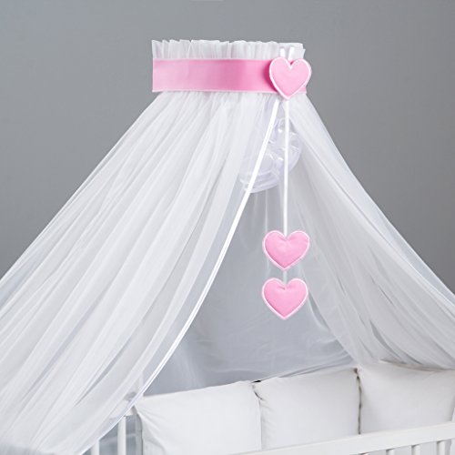 Set di 3 elementi:Dreamzzz Adorabile rete baldacchino/zanzariera per culla neonato + decorazioni da appendere + supporto, realizzato a mano