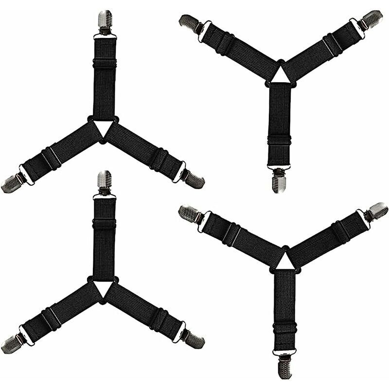 Blocca le lenzuola - Le cinghie possono tenere saldamente le lenzuola, non devi preoccuparti di rovinare le lenzuola dopo esserti girato sul letto. . Materiale: la clip per fogli è realizzata in robusto materiale metallico con denti di plastica stretti all'interno. Può trattenere saldamente il tessuto senza distruggerlo. . Stabile e regolabile: la clip triangolare per lenzuola offre una presa e una stabilità più solide.La cinghia può regolare la lunghezza in base alla tensione, che è perfettamente regolabile con le lenzuola. . Facile da usare: installa 3 clip sugli angoli del lenzuolo, ripeti l'operazione sopra per i 4 angoli, quindi gira gli angoli installati sul materasso. . Applicazione: adatto a vari tipi di biancheria da letto, ampiamente utilizzato in copritovaglie, coprigriglie, coprisedili per auto, coprisedili marini, coprisedili per motociclette, coprisedili per scooter, coprisedili per divani, coprisedili per sedie, eccetera. .