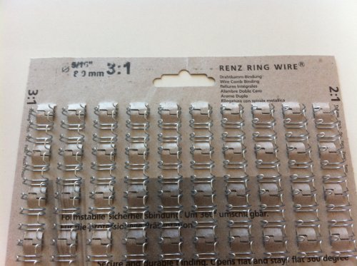 Renz Wire elementi per rilegatura 34 anelli, 3: 1, diametro 8 mm, 5/40,6 cm silver matt, 100 Pezzi