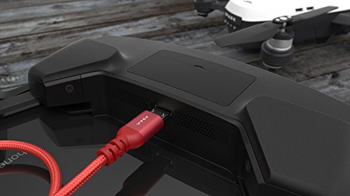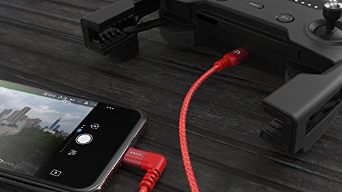 Adam Elements Peak II Cavo Lightning a Micro-USB per telecomando DJI Serie Mavic & Spark - Rosso [Certificato iPhone & Pad I MFI I 30 cm lungo I Nylon e alluminio I Un lato 90 °]