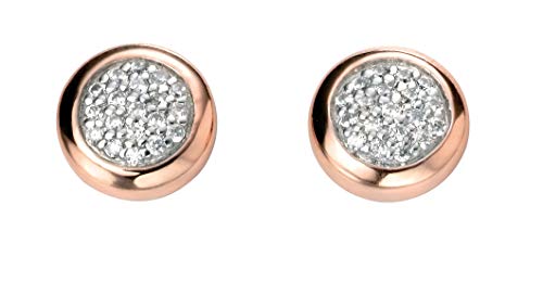 Elements Orecchini a perno in argento Sterling con brillantini e bordo in oro rosa