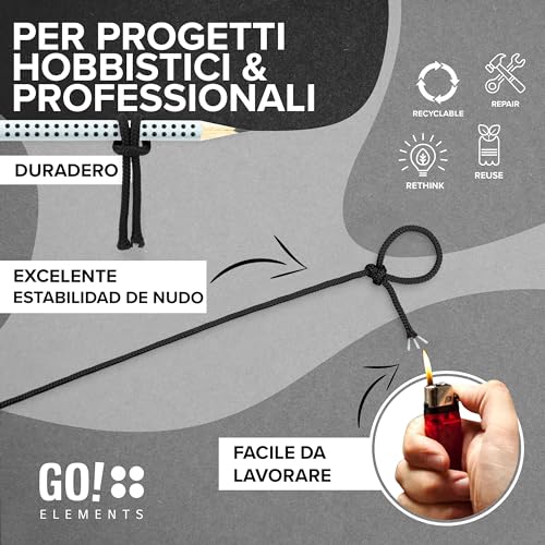 GO!elements 100m Paracord Corda in Nylon antistrappo - 3mm Paracord 425 Tipo II Linee Come Corda da Esterno, Corda Multiuso, Corda di Sopravvivenza - Linea in Nylon Max. 192kg, Colore: Nero