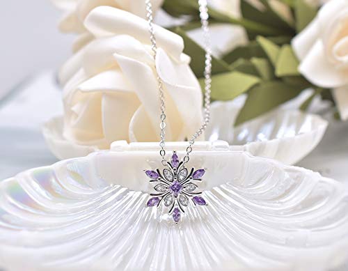 Elensan Collana da donna con ciondolo a forma di fiocco di neve in argento sterling 925 con cristalli blu e catena a clavicola
