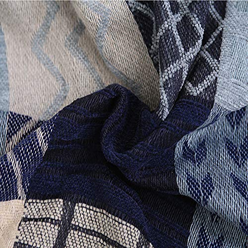 Ele ELEOPTION Coperta da Tiro in Ciniglia, Nappe Jacquard Coperta da Tiro Coprisedile per Divano Decorativo Divano da Letto Sedia Morbida, Motivo Tribale Popolare (220 x 250 CM, Griglia Blu)
