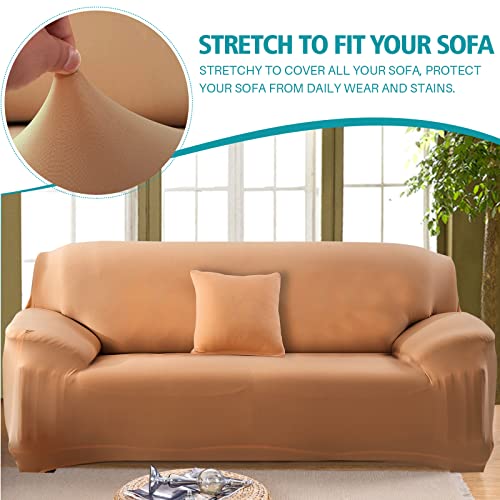 Ele ELEOPTION Copridivano, Copridivano Elasticizzato, Copridivano in Poliestere, Copridivano Morbido Antiscivolo in Tessuto Spandex, Cachi, 3 Posto (Lunghezza Divano 170-220cm)