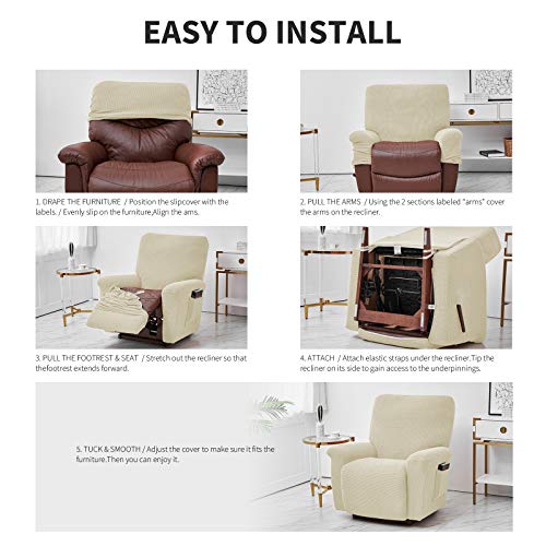 Ele ELEOPTION Copridivano Reclinabile, Copertura Elastica per Divano Reclinabile, Jacquard Antimacchia, 4 Pezzi, per Poltrona reclinabile, Poltrona di Relax, Poltrona da Massaggio, Beige