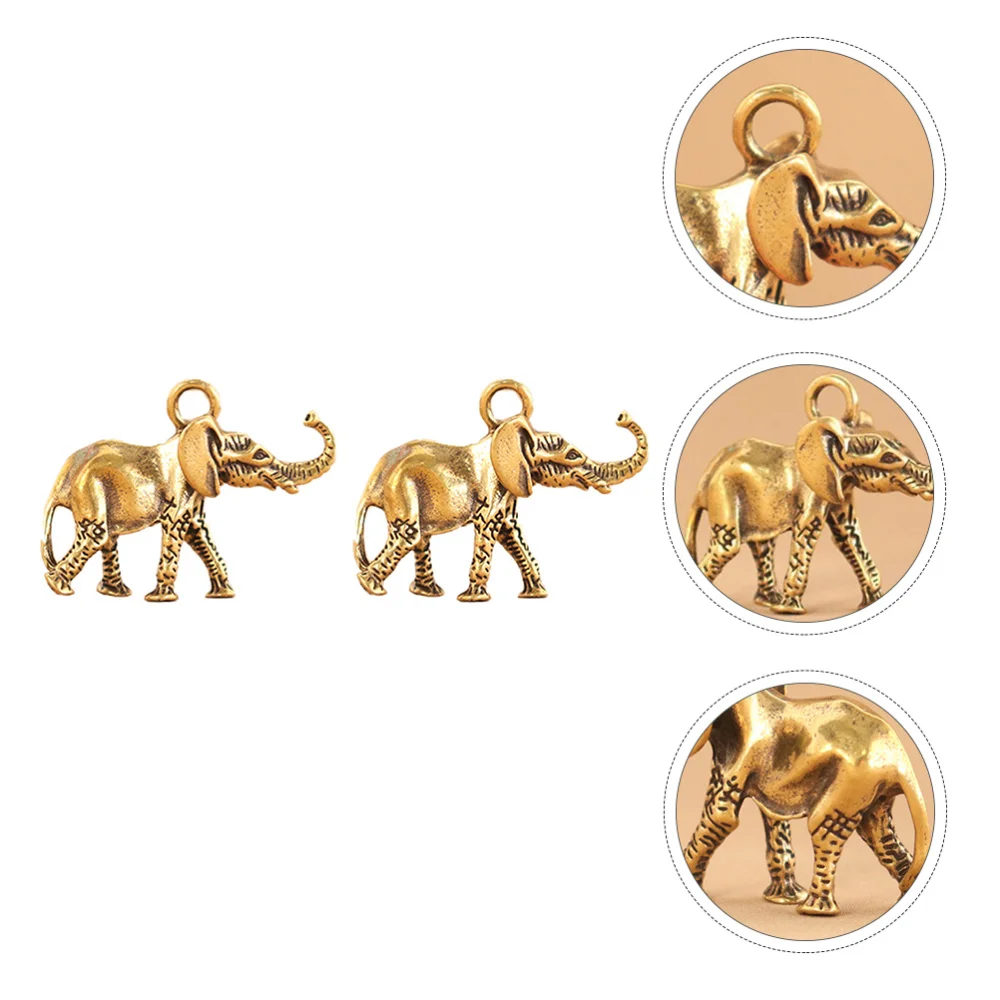2Pcs Elephant Design Adornment Creative Desktop Decor Home Copper Craft Golden