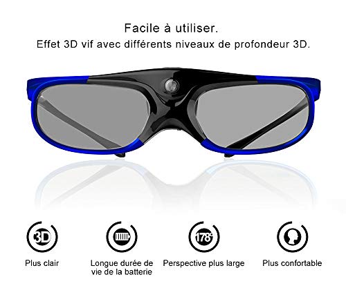 ELEPHAS DLP-Link - Occhiali 3D ricaricabili per tutti i proiettori DLP-Link 3D, Acer, ViewSonic, BenQ Vivitek, Optoma, Panasonic, Dell, Viewsonic, ecc.