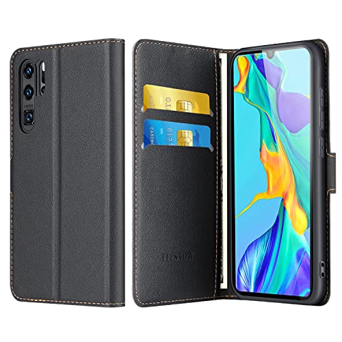 ELESNOW Cover per Huawei P30 Pro, Flip Wallet Case Custodia per Huawei P30 Pro (Nero)