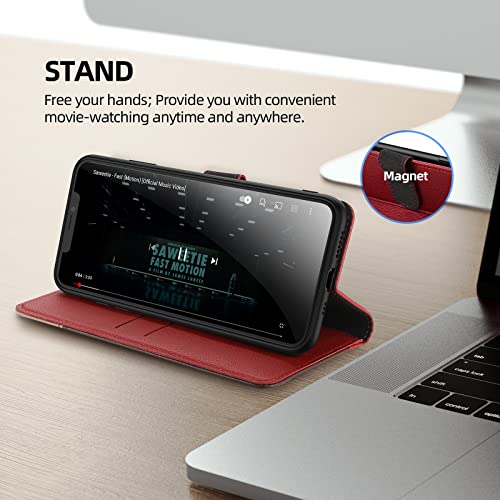 ELESNOW Cover iPhone 11Pro-5.8", Custodia in Pelle Magnetica Libro Flip Caso Portafoglio con [Kickstand] [Slot per Schede] [Chiusura Magnetica] per Apple iPhone 11 Pro (Rosso/Marrone/Cachi)