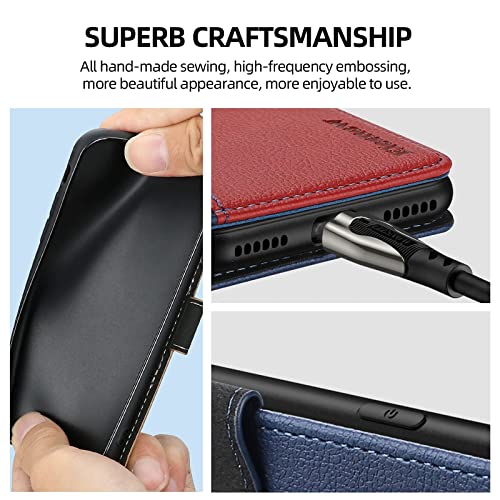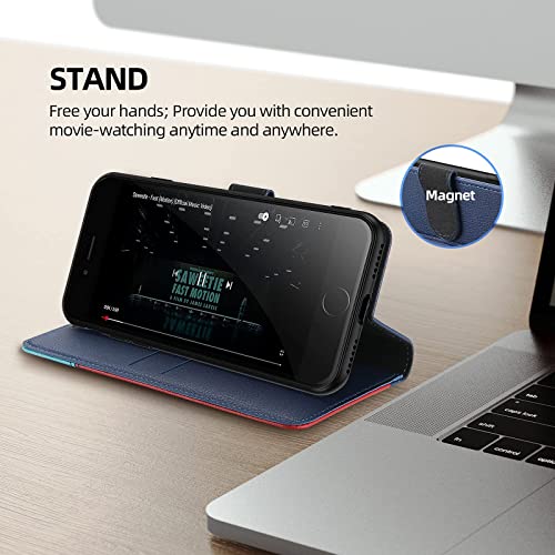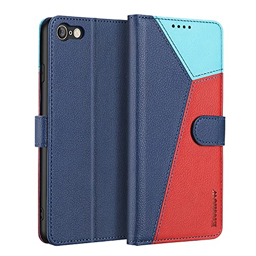 ELESNOW Cover iPhone SE 2022 / iPhone 7 / iPhone 8 / iPhone SE 2020-4.7", Custodia in Pelle Magnetica Libro Flip Caso Portafoglio per Apple iPhone SE 2022/7 / 8 / SE 2020 (Blu/Rosso)