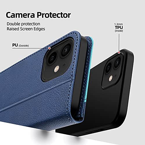 ELESNOW Cover iPhone 12 / iPhone 12 PRO - 6.1", Custodia in Pelle Magnetica Libro Flip Caso Portafoglio per Apple iPhone 12/12 PRO (Blu)