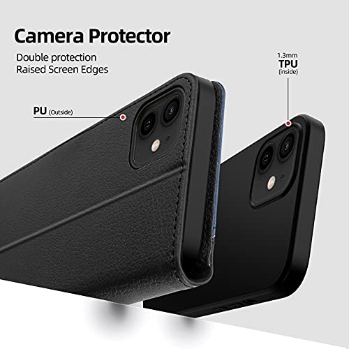 ELESNOW Cover iPhone 12 Mini - 5.4", Custodia in Pelle Magnetica Libro Flip Caso Portafoglio per Apple iPhone 12 Mini (Nero)