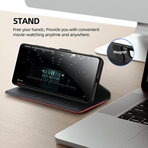 [Semplifica tua vita] Custodia Portafoglio Samsung Galaxy S21 4G / 5G all'interno c'è duo slot e una tasca clip per contenere le carte, offre slot per carte di credito, carta d'identità, biglietti da visita e una tasca laterale per contanti. Cover può passare in posizione orizzontale e agire come sostegno, comodo per guardare film o per chattare in video.