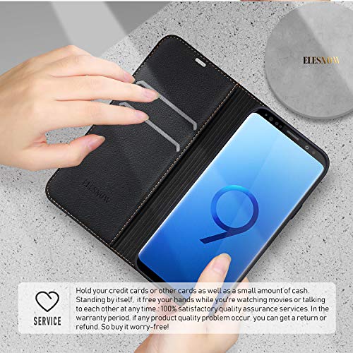 ELESNOW Cover per Samsung Galaxy S9, Flip Wallet Case Custodia in Pelle PU Premium, Slot per Schede, con Magnetica a Scatto per Samsung Galaxy S9 (Nero)
