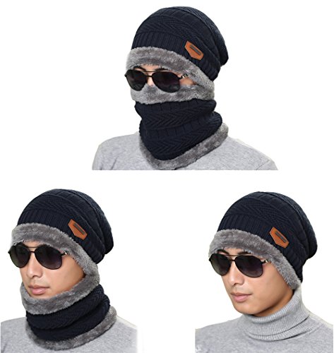 Eleter Uomo inverno caldo morbido lavorato a maglia cappello del cappello della del Beanie con fazzoletto da collo