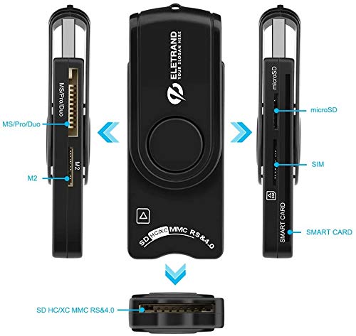Eletrand USB Lettore di Schede Smart, Dod Military Common Access CAC Card Reader con SD/TF/ M2/ MS Card Slots, Compatibile con Windows, Linux/Unix, Mac OS X - 480mb/s