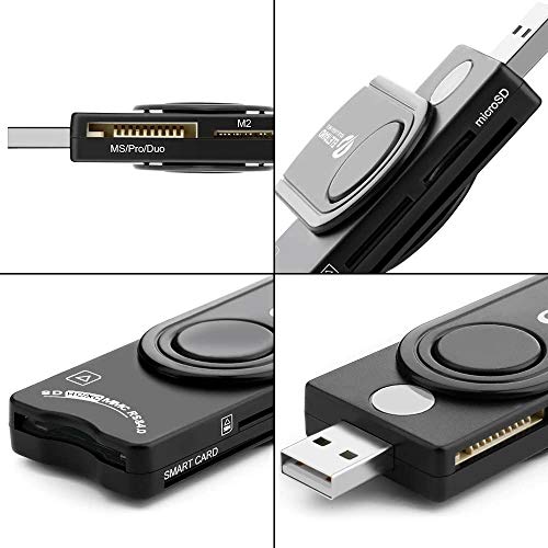 Funzione del lettore di schede di memoria: Supporta schede intelligenti da 5V, 3V e 1.8V, schede di memoria ISO 7816 A, B e C. Schede di memoria per scheda SD/scheda micro SD/M2/MS/SIM, comodo per leggere e scrivere più schede.