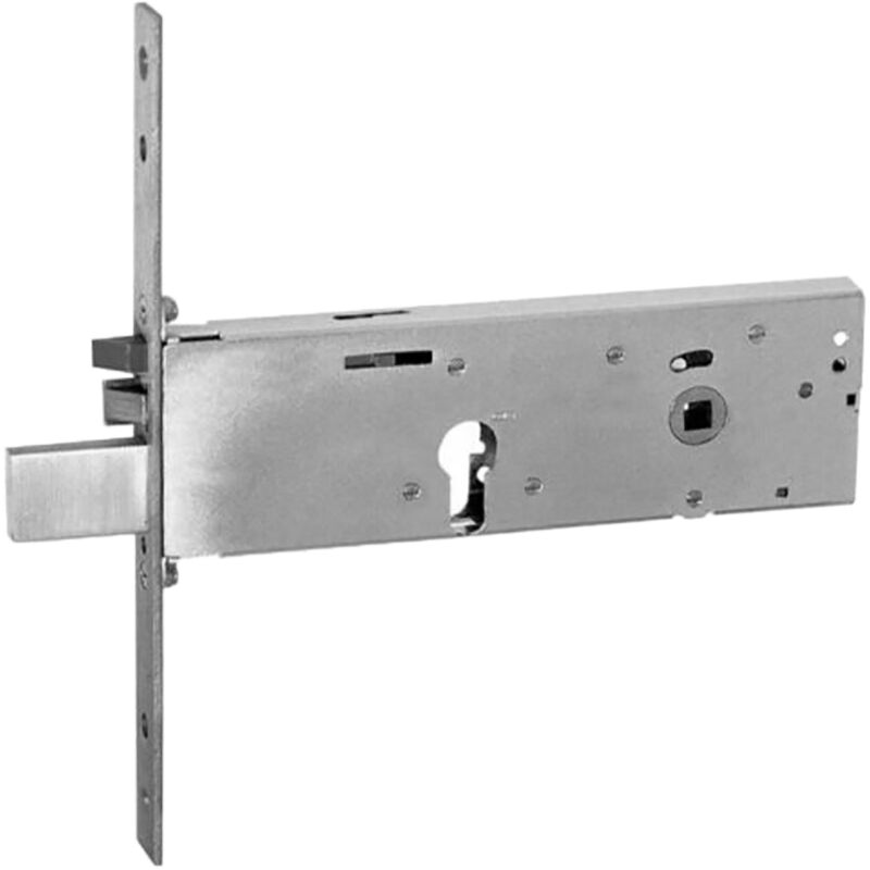 Articolo 961.920.902 a cilindro europeo, reversibile. Scrocco regolabile. Tre mandate. Frontale inox 22 mm. Entrata 90 mm