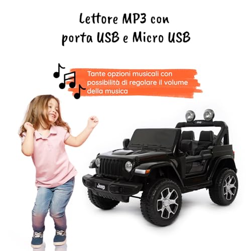 Jeep Wrangler Rubicon 2 posti - splendida auto per bambini elettrica con batteria da 12 V 4,5AH e lettore Mp3 incluso. Ottima per bambini fino ai 5 anni risulta semplice e veloce da montare seguendo le istruzioni
