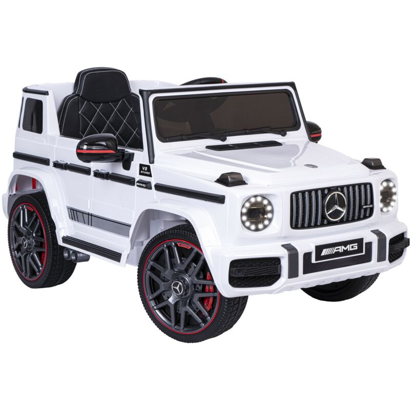 Auto elettrica per bambini MERCEDES AMG G63 bianca Modello: MERCEDES AMG G63 | Colore: bianco Auto elettrica a batteria, con telecomando incluso. L'auto elettrica per bambini MERCEDES AMG G63 è un regalo perfetto per i giovani appassionati di auto. Il modello è stato realizzato con materiali di altissima qualità con attenzione ad ogni dettaglio. L'auto ha un equipaggiamento molto ricco. I sedili sono realizzati in ecopelle, che non solo offre comfort, ma aggiunge anche eleganza. I pneumatici EVA garantiscono una guida fluida e silenziosa, indipendentemente dalla superficie. Ciò rende l'auto perfetta sia per uso interno che esterno. Per ulteriore intrattenimento e comfort, l'auto è dotata di un ampio pannello musicale con radio Bluetooth, slot per schede SD, ingresso AUX e display LED con indicatore del livello di tensione. Grazie ad esso potremo goderci la nostra musica preferita mentre utilizziamo l'auto. Il veicolo è dotato di un realistico clacson sul volante, che permette ai