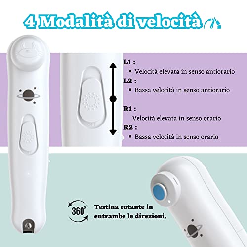Lima elettrica per unghie per bambini - sicura, facile da usare e precisa - lima 2 in 1 con lato lima e lato tagliaunghie - 6 testine compatibili - lima di precisione a LED integrata