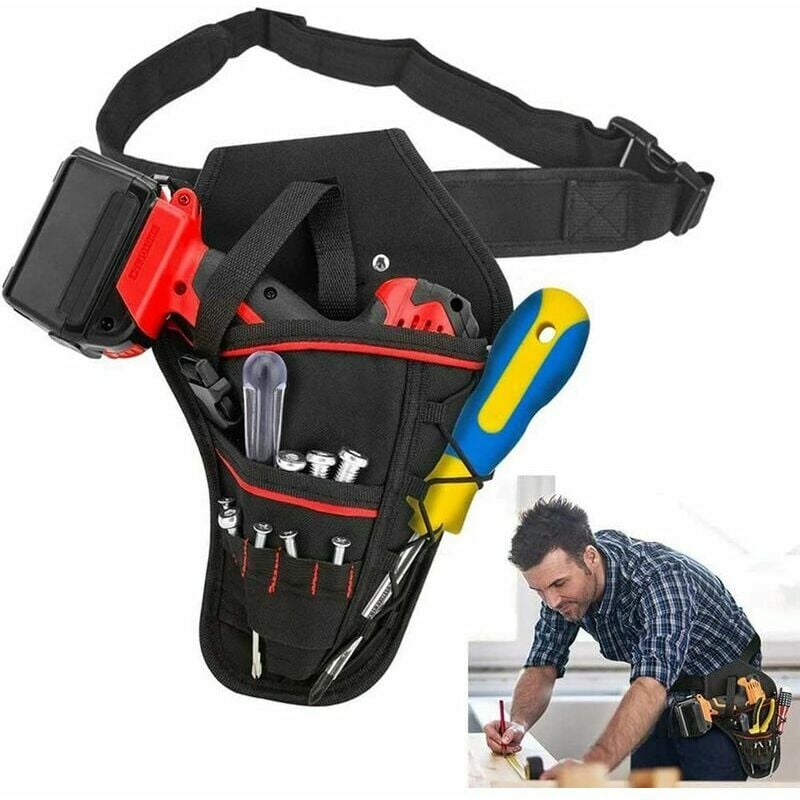 Borsa per attrezzi in tela Marsupio per cintura Piccola borsa per attrezzi Borsa per attrezzi con cintura in nylon regolabile Borsa da lavoro di dimensioni professionali per elettricisti Tecnico-Nero . Non dovrai più piegarti per raccogliere il tuo trapano;