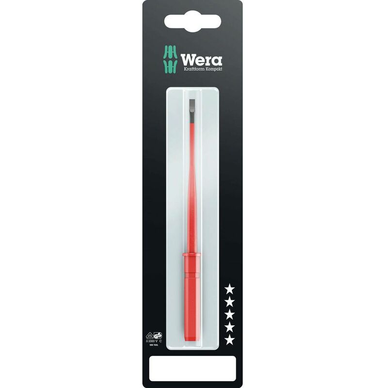 Dettagli tecnici Ambito di applicazione (cacciavite) Elettricisti, Elettronica e meccanica di precisione, VDE, Officina e meccanica Dimensione del prodotto, lunghezza 154 mm Forza Taglio Larghezza della lama 3.5 mm Peso 28 g Tipo prodotto Lama intercambiabile per giraviti Kraftform Kompakt VDE 60 IS 0,6 x 3,5 x 154 mm SB Lama intercambiabile con diametro della lama ridotto con isolamento di protezione integrato, in questo modo è possibile raggiungere e azionare elementi a vite e a molla profondi. Controllo pezzi a 10.000 V per lavorare in sicurezza alla tensione approvata di 1.000 V.. Testo tradotto automaticamente Punti di forza e dettagli Lama intercambiabile Kraftform Kompakt VDE per viti a intaglioIsolato, testato a pezzi in conformità con IEC 60900Inserto esagonale da 9 mm con inclinazione di inserimentoLa punta Wera Black Point offre una precisione perfetta e una protezione anticorrosione ottimizzata.Tagliente conica Incluso nella consegna null Requisiti di sistema null