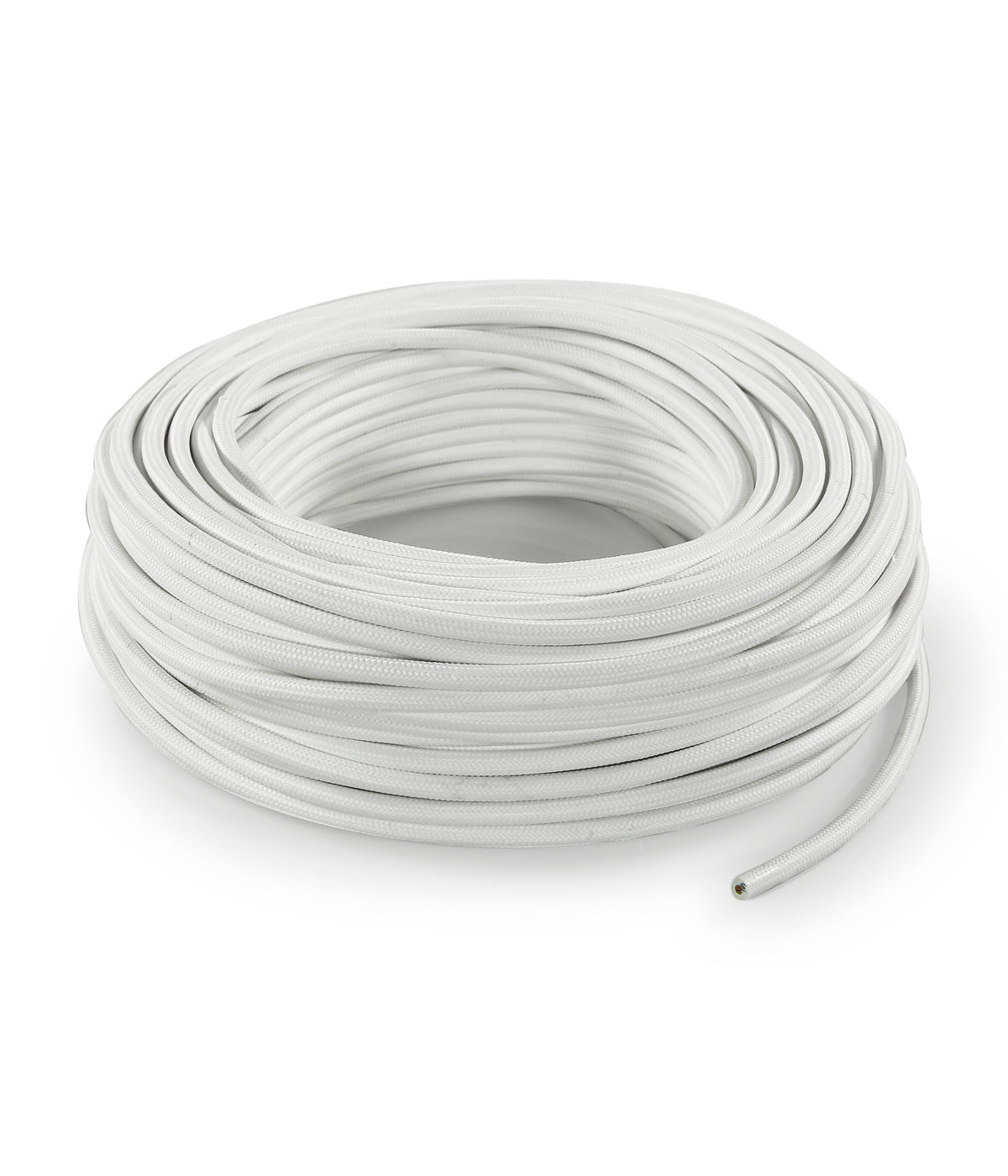 Cavo tessile tondo 2x0,75 50mt bianco. Ideale per rinnovare i cavi di abat jour,lampadari e creare nuove sospensioni