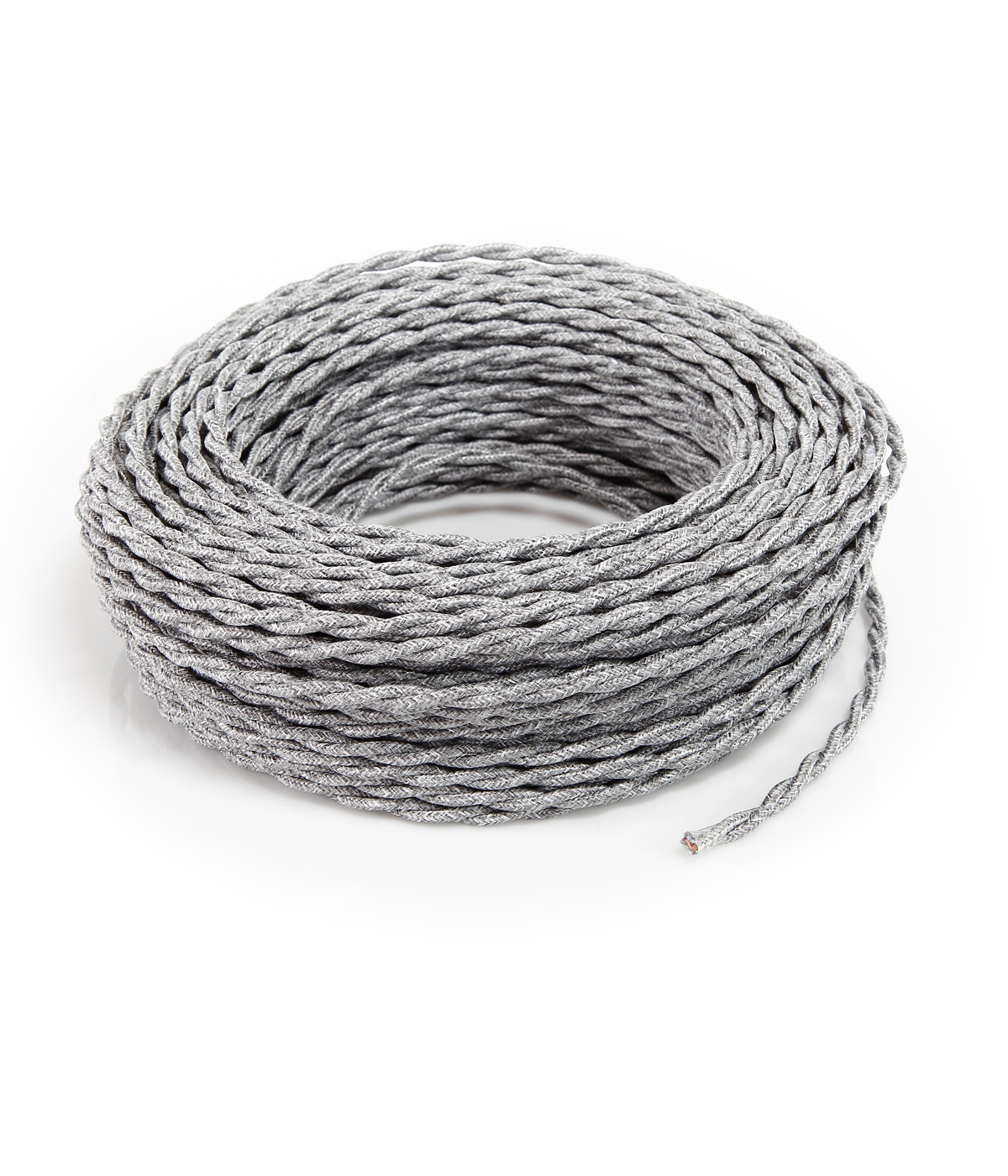 Treccia tessile 2x0,75 50 mt canvas grigio chiaro. Ideale per rinnovare i cavi di abat jour,lampadari e creare nuove sospensioni