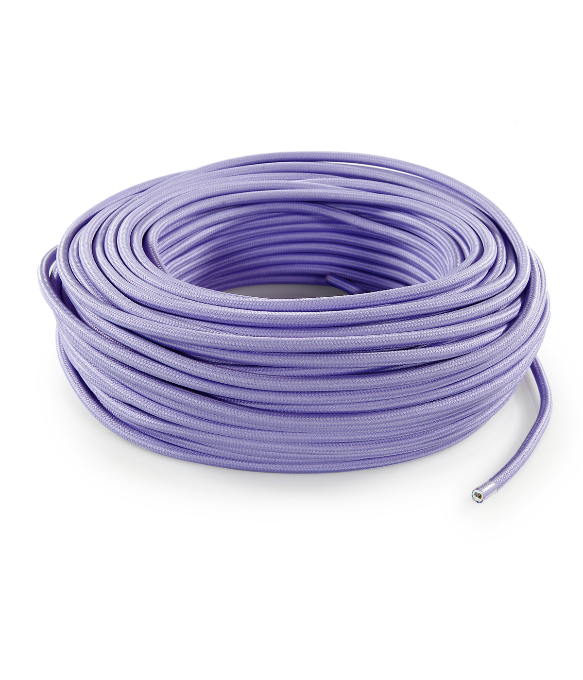 Cavo tessile tondo 2x0,75 50mt lilla. Ideale per rinnovare i cavi di abat jour,lampadari e creare nuove sospensioni