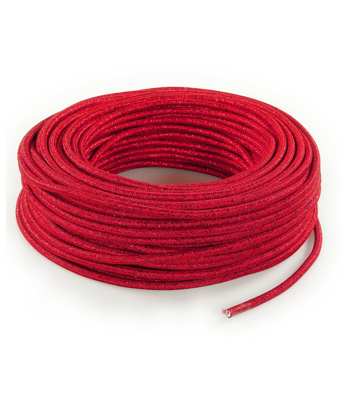 Cavo tessile tondo 3x0,75 50mt rosso lame. Ideale per rinnovare i cavi di abat jour,lampadari e creare nuove sospensioni
