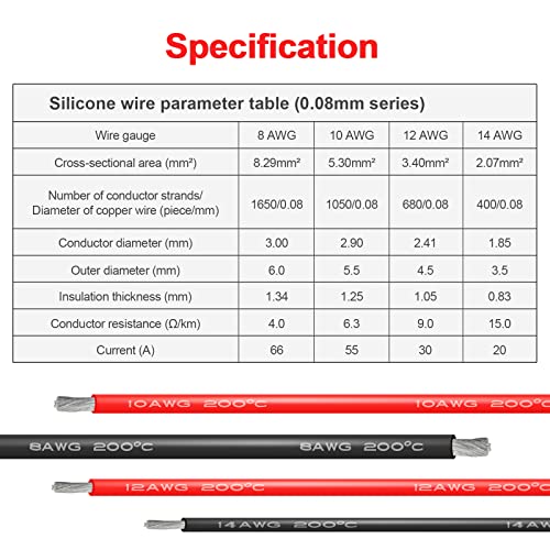 Prestazioni eccellenti: questo filo in silicone presenta i vantaggi di alta conducibilità, bassa resistenza, alta flessibilità, resistenza alle alte temperature, resistenza a molti tipi di grasso e così via. La temperatura più alta è +200℃ e la temperatura più bassa è -60℃. Ciò significa che il filo dura più a lungo e può essere utilizzato con sicurezza in modelli RC o altre apparecchiature elettroniche.