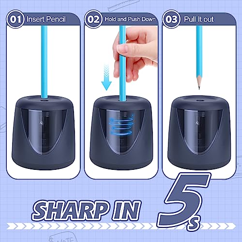 【Affilatura automatica】L'affilatrice elettrica per bambini utilizza un motore elettrico. Basta inserire la matita, applicare una leggera pressione per spingere la matita verso il basso e l'affilatrice affilerà rapidamente la matita in 5 secondi. L'affilatrice si fermerà automaticamente quando la matita viene rimossa, eliminando la seccatura della rotazione manuale. Ciò rende l'affilatura più veloce, efficiente e risparmia tempo ed energia.