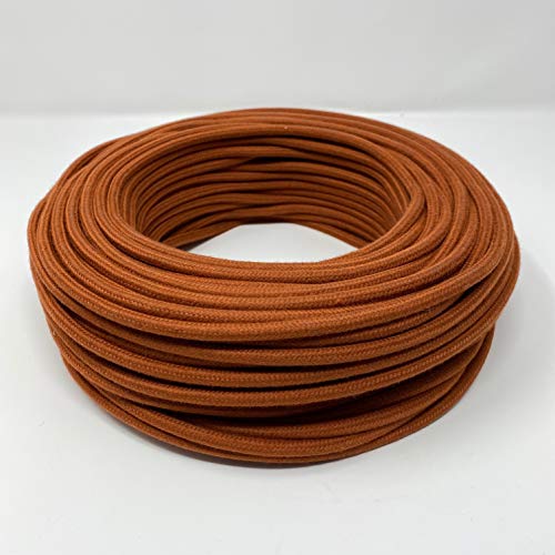 Cavo Elettrico Tondo/Rotondo Rivestito in Tessuto. Colore Marrone Ruggine Cotone. Sezione 3x0.75 (3 Metri)