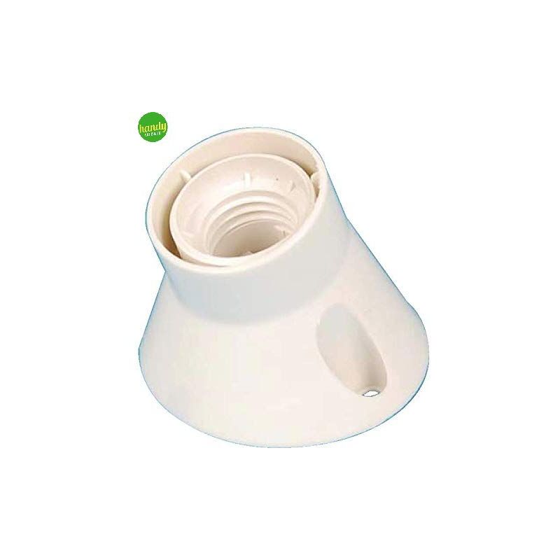 Dalla linea dedicata all'impiantistica elettrica a marchio ELETTROCANALI, il portalampada in termoplastica è l'ideale per la creazione di punti lucecon alimentazione a 220 - 250 Volt, i cavi vengono serrati mediante morsetti ad innesto rapido da 0,5 a 2,5 mm², grazie alla base INCLINATA con possibilità di fissaggio negli angoli con tasselli o viti nel caso di supporti in legno, si può posizionare a parete o soffitto e l'inclinazione della baseaiuta la diffusione della luce nel punto dove viene orientata, idoneo per lampadine di vecchia generazione alogene che di nuova a LED con attacco E27.