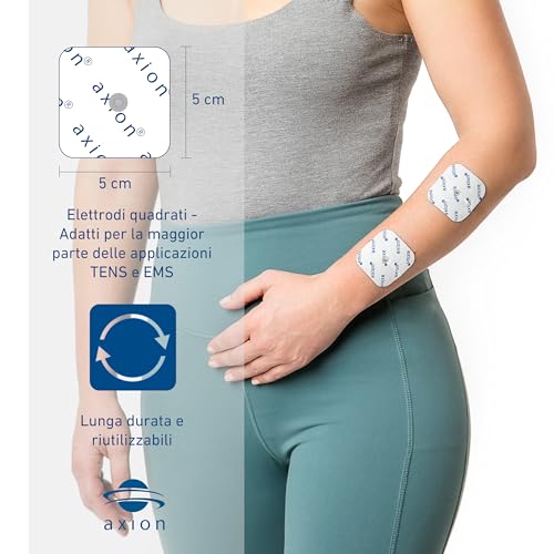 20 elettrodi axion 5x5 cm | Compatibili con elettrostimolatori TENS e EMS Beurer/Sanitas | Riutilizzabili e autoadesivi con attacco a bottone da 3.5 mm