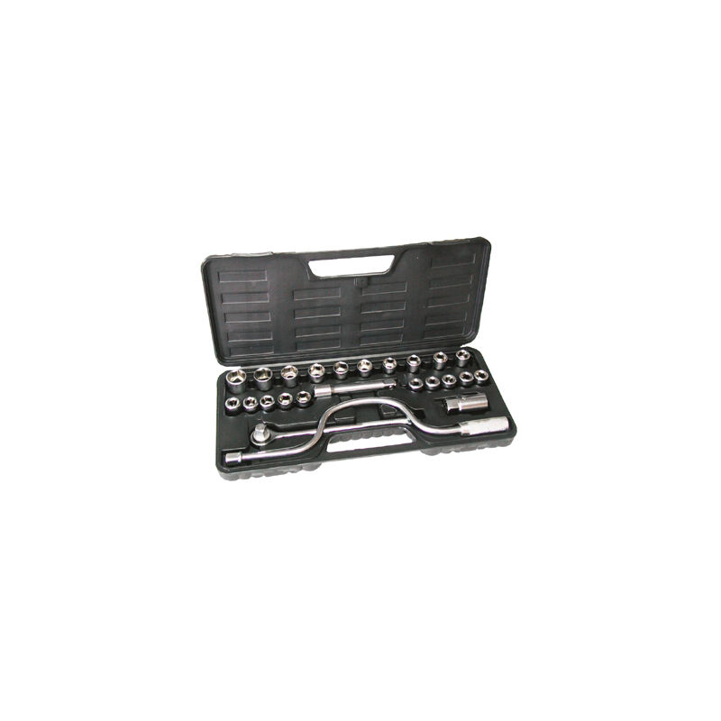Chiavi a bussola in acciaio serie 25 pz con accessori chiavi a bussola serie 25 pz in acciaio speciale con accessori d'uso contenuto cricchetto reversibili attacco bussole 1 2 bussole da 1 2 mm 10 32