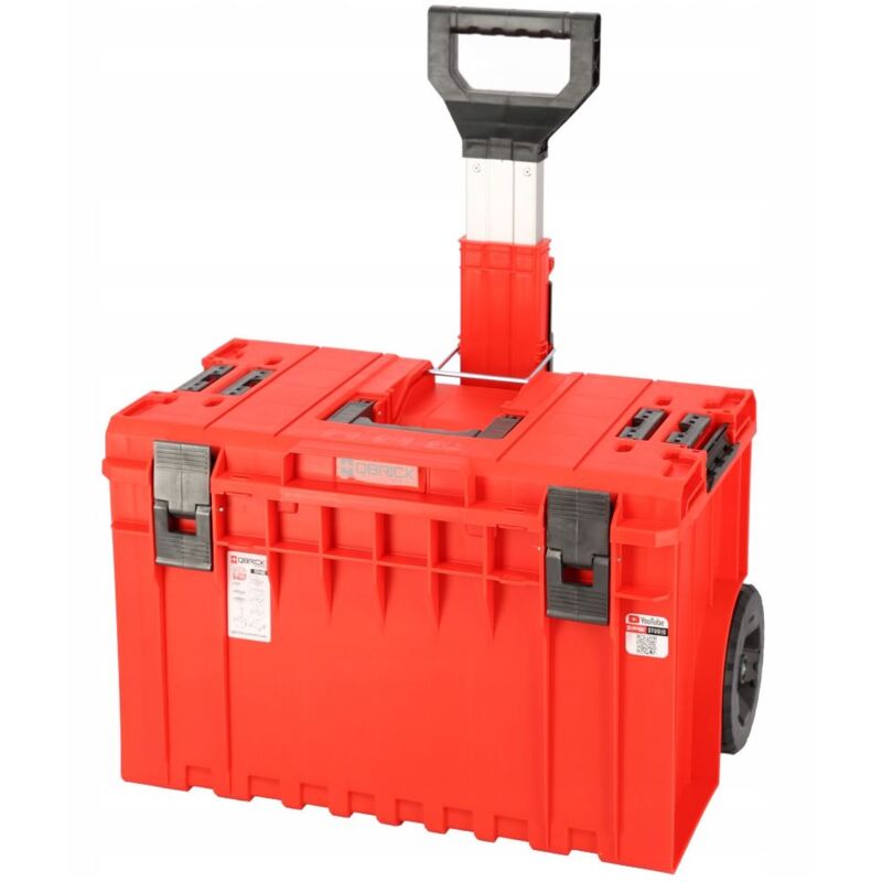Carrello Qbrick System ONE RED Una grande cassetta degli attrezzi con ruote che garantisce un'eccellente mobilità dei sistemi modulari Qbrick. Due ruote gommate montate su un asse in metallo consentono il trasporto sicuro anche di set complessi. Una maniglia telescopica in alluminio che si inclina quando il coperchio viene aperto consente un facile accesso all'interno della scatola. Ogni scatola è dotata di una guarnizione flessibile che fornisce una protezione completa contro l'ingresso di polvere e acqua. La versione base della copertura è dotata di serie di una funzionale fessura di taglio e di un righello. La struttura rinforzata del coperchio e dell'alloggiamento garantisce un'elevata capacità di carico (50 kg) e può sopportare pressioni fino a 120 kg, consentendo di creare comode piattaforme di lavoro. Dimensioni del box: Lunghezza: 460 mm Larghezza: 600 mm Altezza: 765 mm Capacità: 50 l Linea: ONE compatibile con PRO 500 e PRO 600 Coperchio: connettori per box Qbrick PRO