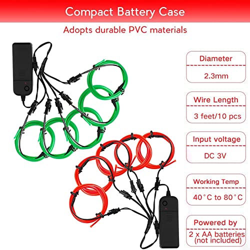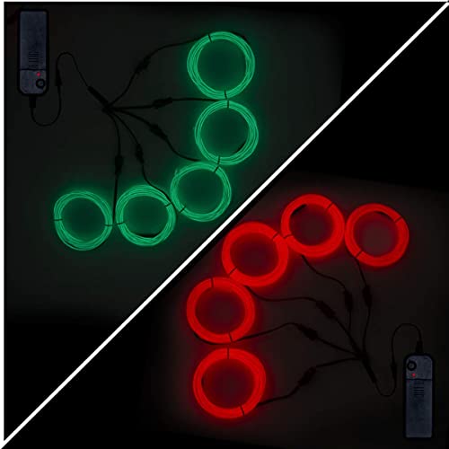 Filo elettroluminescente, confezione da 2 luci al neon, per costumi, 1,5 x 1 m, luminose, stroboscopiche, per feste, fai da te, con controller (verde + rosso)