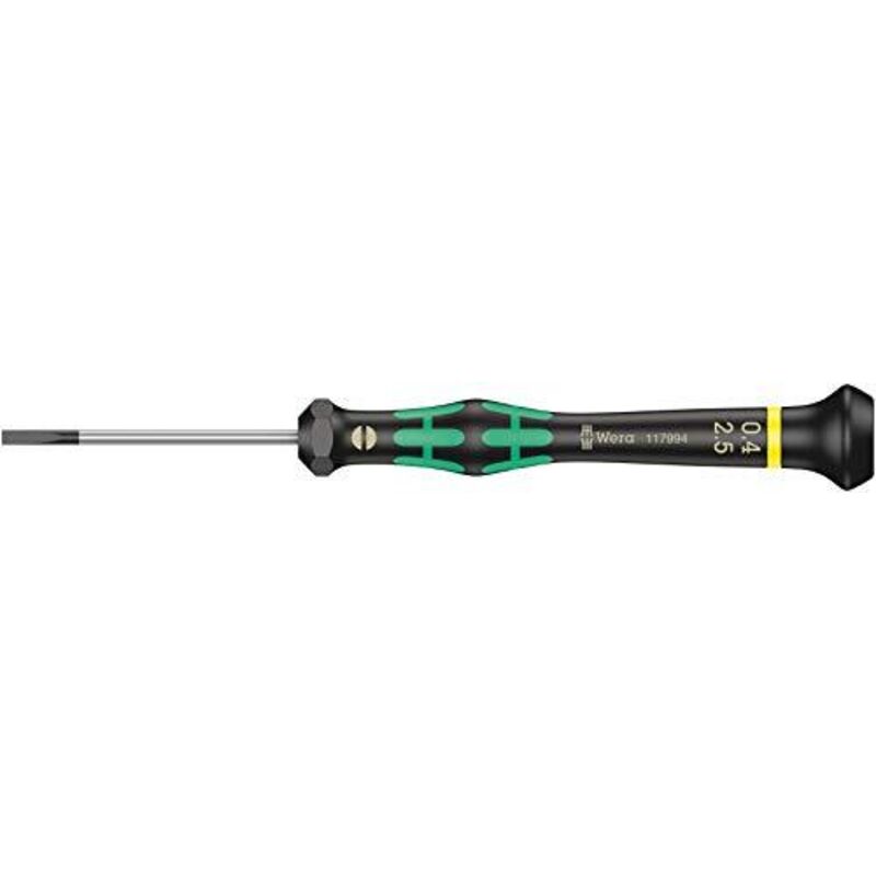 Dettagli tecnici Ambito di applicazione (cacciavite) Elettronica e meccanica di precisione Cacciaviti caratteristiche Impugnatura multicomponente Dimensione del prodotto, lunghezza 147 mm Forza Taglio Larghezza della lama 2.5 mm Lunghezza della lama 50 mm Materiale Acciaio per utensili Proprietà del materiale legato Tipo prodotto Cacciavite a taglio Micro cacciavite 2035 0,4 x 2,5 x 50 mm Micro cacciavite Wera di alta qualità per avvitamenti meccanici di precisione. Sostenendo la mano sul cappuccio rotante e la zona di rotazione rapida sotto il cappuccio rotante è possibile eseguire un avvitamento veloce e fulmineo. Non è più necessario tanto tempo. Zone di presa con inserti morbidi integrati per trasmettere forze di avvitamento e svitamento più elevate. Zona di precisione per l'angolo di rotazione corretto durante i lavori di regolazione. Punti di forza e dettagli Cacciavite Micro per viti a taglio Impugnatura Micro multicomponente per lavori rapidi ed ergonomici Con protezione