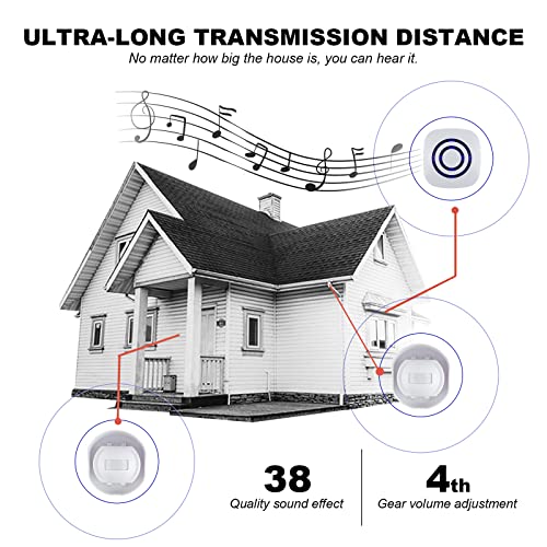 Kit elettronico per campanello senza fili con 1 ricevitore plug-in e 2 sensori PIR Motion Detector 3 Livelli di volume e 38 suonerie intelligenti Suoneria di sicurezza (Nero, Impermeabile)