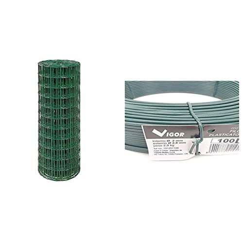 Rete elettrosaldata 25 m, altezza 60 cm, maglie 75x60 mm & FILO FERRO PLASTICATO VERDE P/TENSIONE MT.100