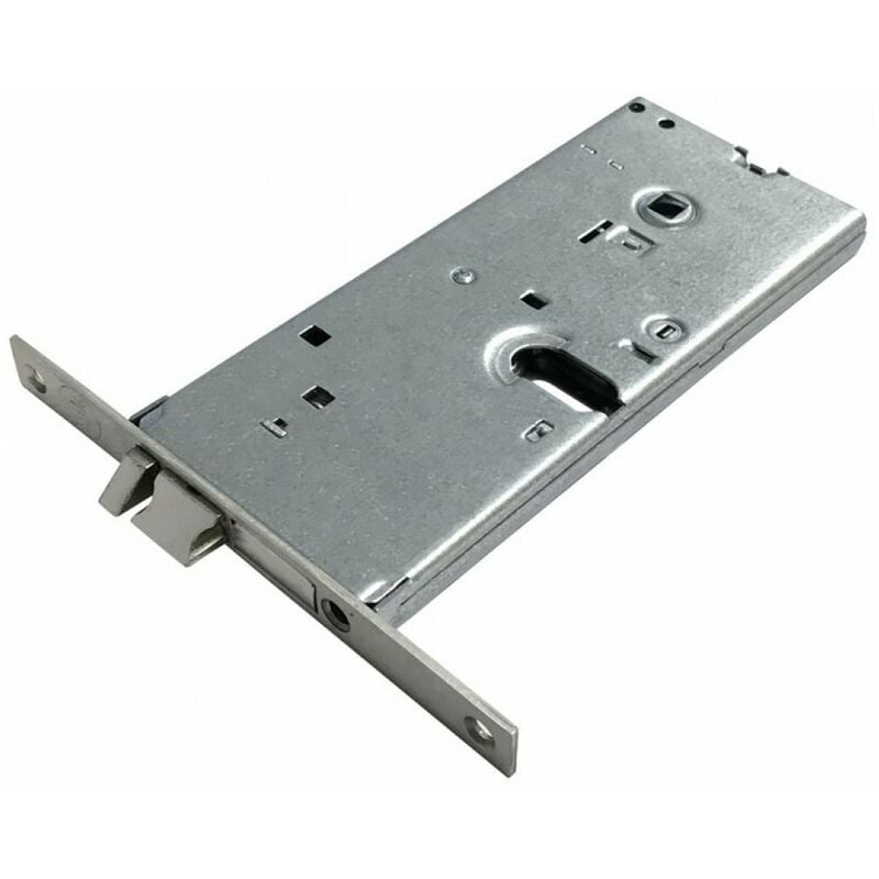 Elettroserratura da fascia. Scrocco e pistone di ricarica reversibili, catenaccio a 2 mandate, tensione 12 V ca. Art. 85202 cod. 27107 E. mm. 80 - F. mm. 16 (scatola cm. 181,5x77,5) cf/pz 1