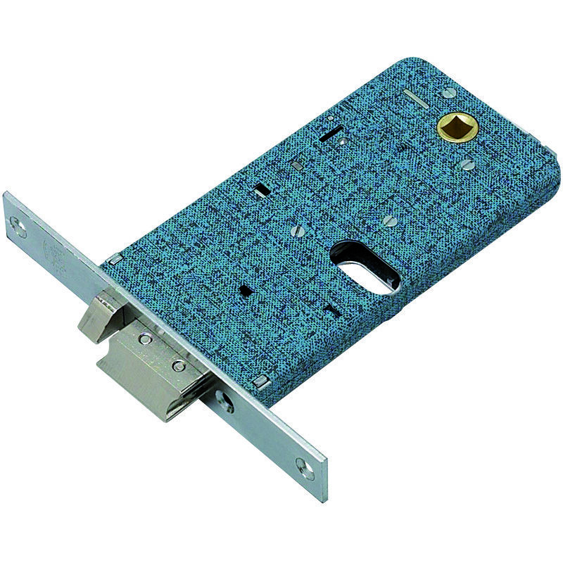 Elettroserratura per fasce 12V. Scrocco, 1 mandata, quadro maniglia in ottone, scatole mm. 153x78.