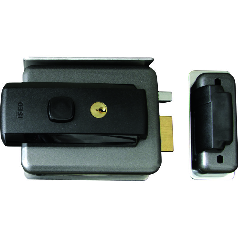 Iseo elettroserratura cancelli appl. c/s art. 52n515 universale Elettroserratura da applicare per cancelli. Solo scrocco, entrata regolabile, reversibile, multifunzione (solo cilindro, solo pulsante o cilindro+pulsante), 3 chiavi, alimentazione 12 Vac-15 W-1,25 A, verniciata col. grigio marezzato. (Un solo codice sostituisce tutte le serrature Art. 5250 e Art. 5253). Articolo produttore: 52N515