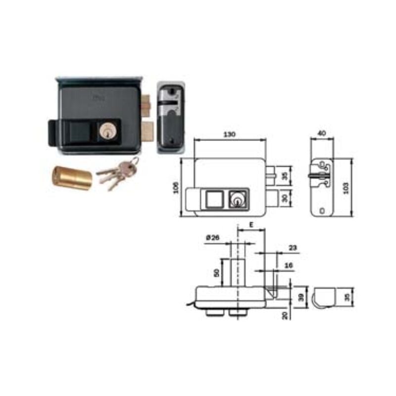 Mm.50-80 sx (53n5152) elettroserratura da applicare verniciata - 12v ac 15w - cilindro interno - cilindro fisso ø mm.26x50 esterno - 2 mandate - scrocco autobloccante con pistone di carica incorporato - forza regolabile - 3 chiavi - bocchetta regolabile - confezione con tettuccio piastra porta serratura e bocchetta Categoria merceologica: Elettroserrature e accessori - Sicurezza - Serrature elettriche applicare per porte in ferro
