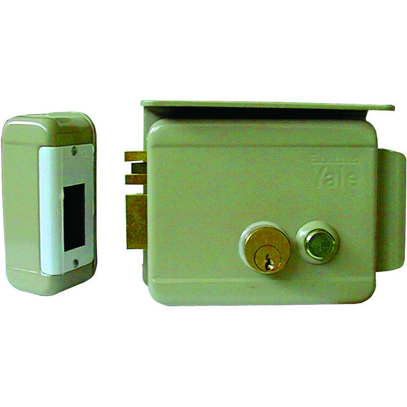 Elettroserratura da applicare. Scrocco, cilindro esterno fisso e cilindro interno blocca pulsante con tettuccio sottobocchetta e sottoserratura, 3 chiavi. Da alimentare esclusivamente con trasformatore 15W/12V.